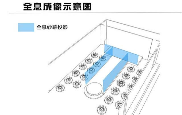 紗幕具有良好的透視性,離遠(yuǎn)處看仿佛是在空氣中成像,結(jié)合宴會廳270度立體成像的3D效果,能夠?qū)崿F(xiàn)雙重視覺效果。在全息宴會廳中內(nèi),全息成像可用于大型舞臺演出、各類發(fā)布會、喜宴等等。